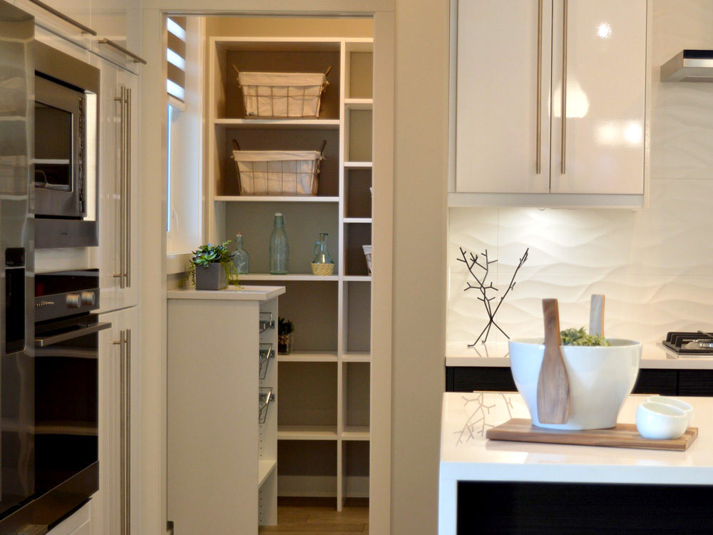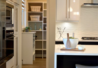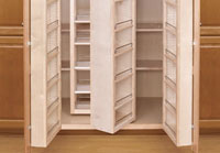 Whatever the size of your kitchen, pantry or garage, it should include a convenient place for storage that maximizes utility. THIC Restoration offers a wide variety of ready-built or custom cabinet and shelving unit installations. Ideally a kitchen pantry is large enough for 7-14 day's of the grocery items needed, and is easily accessible. One of the most popular storage solutions is the “bat-wing” pantry. As the doors are opened everything is easily seen within arms reach.